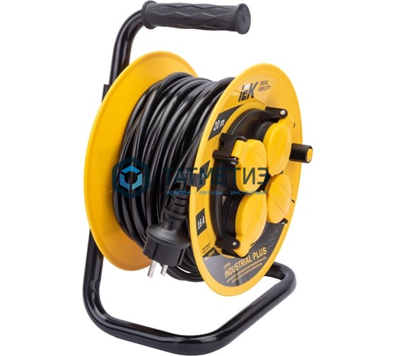Удлинитель на катушке с термозащитой 4х20м IP44 Industrial plus артикул WKP15-16-04-20-44 - переносное удлиняющее устройство с четырьмя розеточными гнездами, оснащенными защитными крышками. Удлинитель подходит для использования как внутри помещений, так и снаружи. Позволяет подключать садовую технику, электроинструменты и прочее оборудование суммарной большой мощностью (до 3,5 кВт).